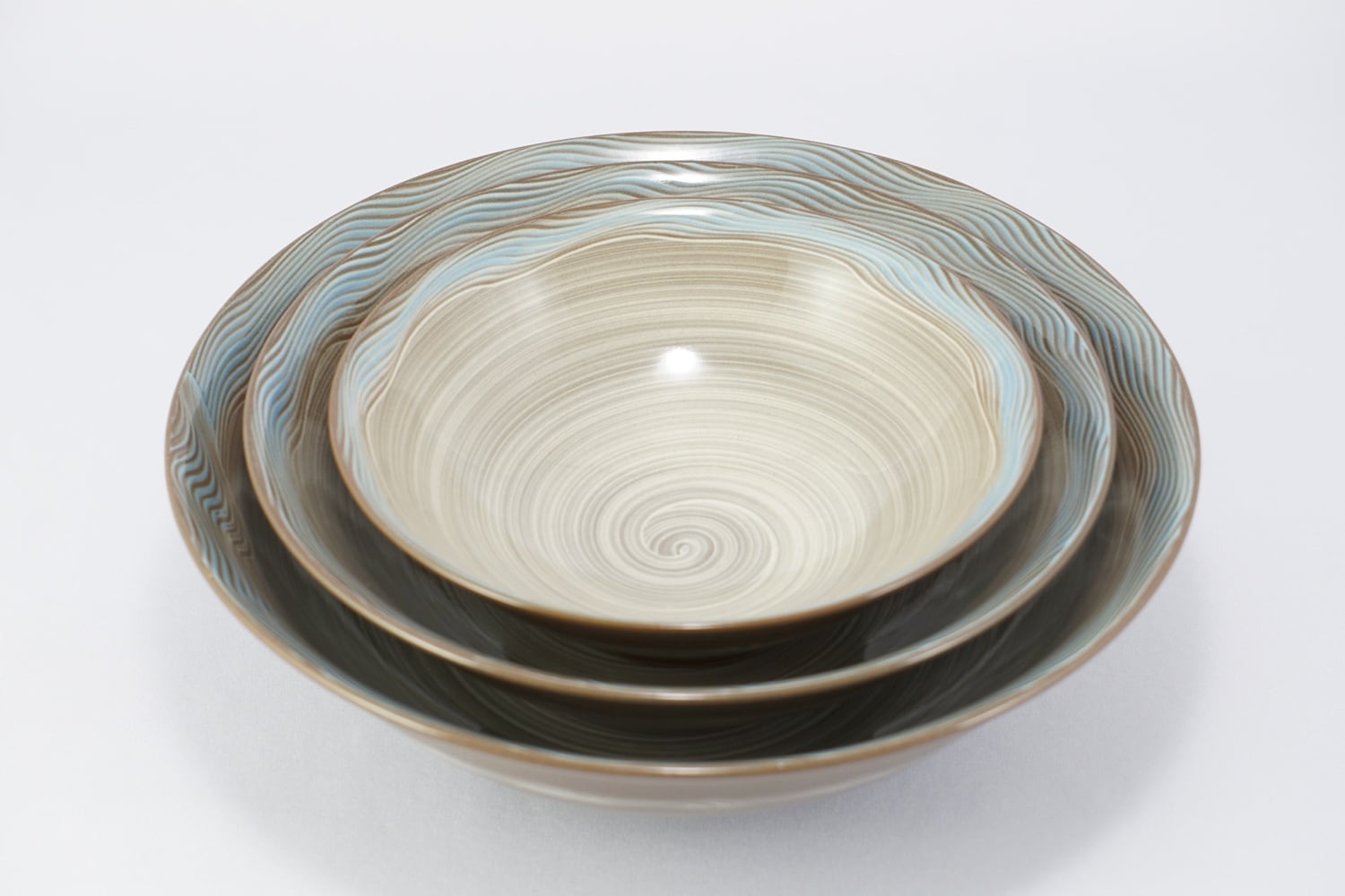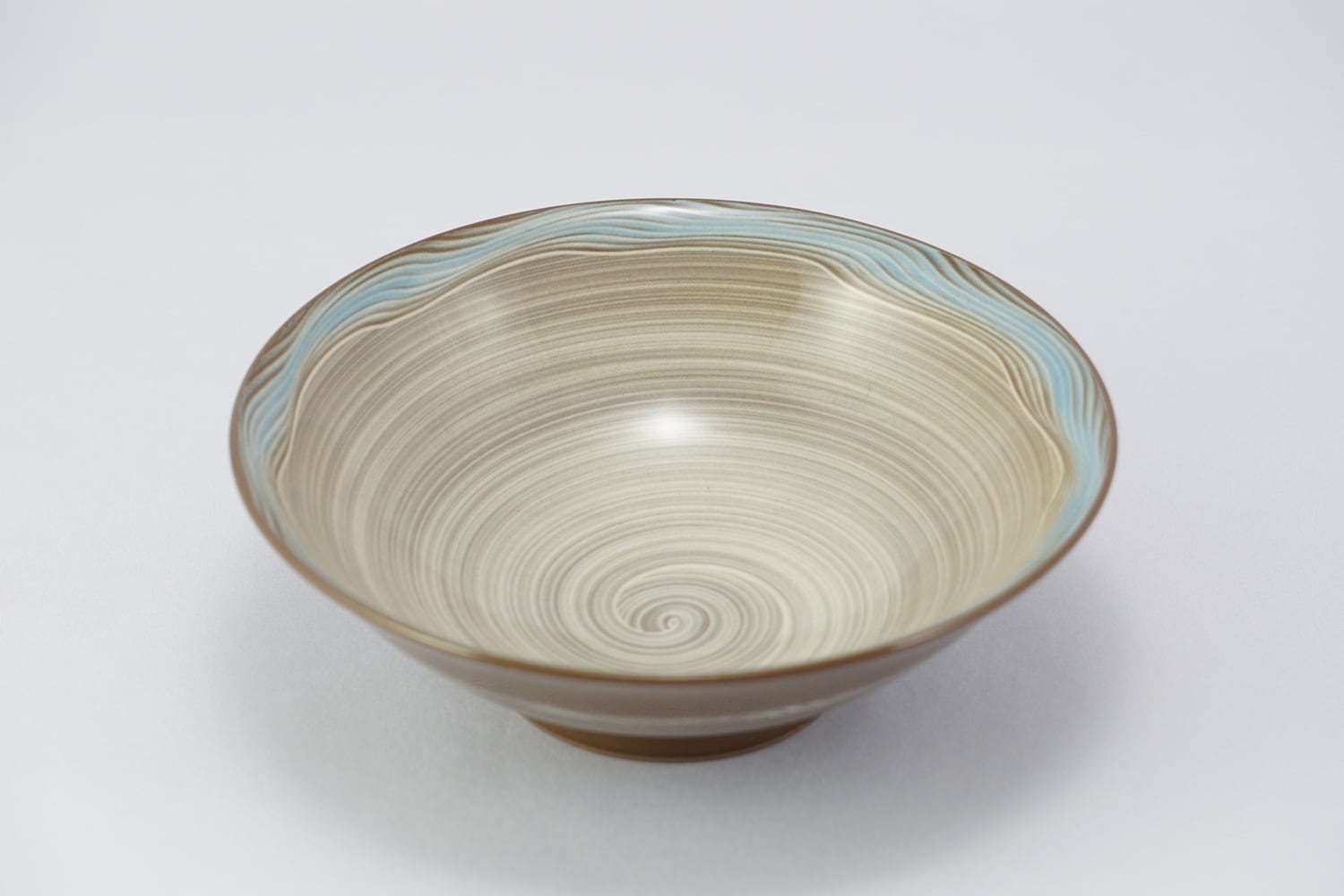 『平鉢(小)刷毛目 波』は、ろくろで一つ一つ丁寧に作られており、土がまだ乾かない状態で施された刷毛目によるさざ波の模様が印象的です。小さなサイズながらも、そのデザインは見る人を魅了し、食卓を華やかに演出します。優雅な形状と縁の青色が食材を引き立て、料理に彩りを添えることでしょう。