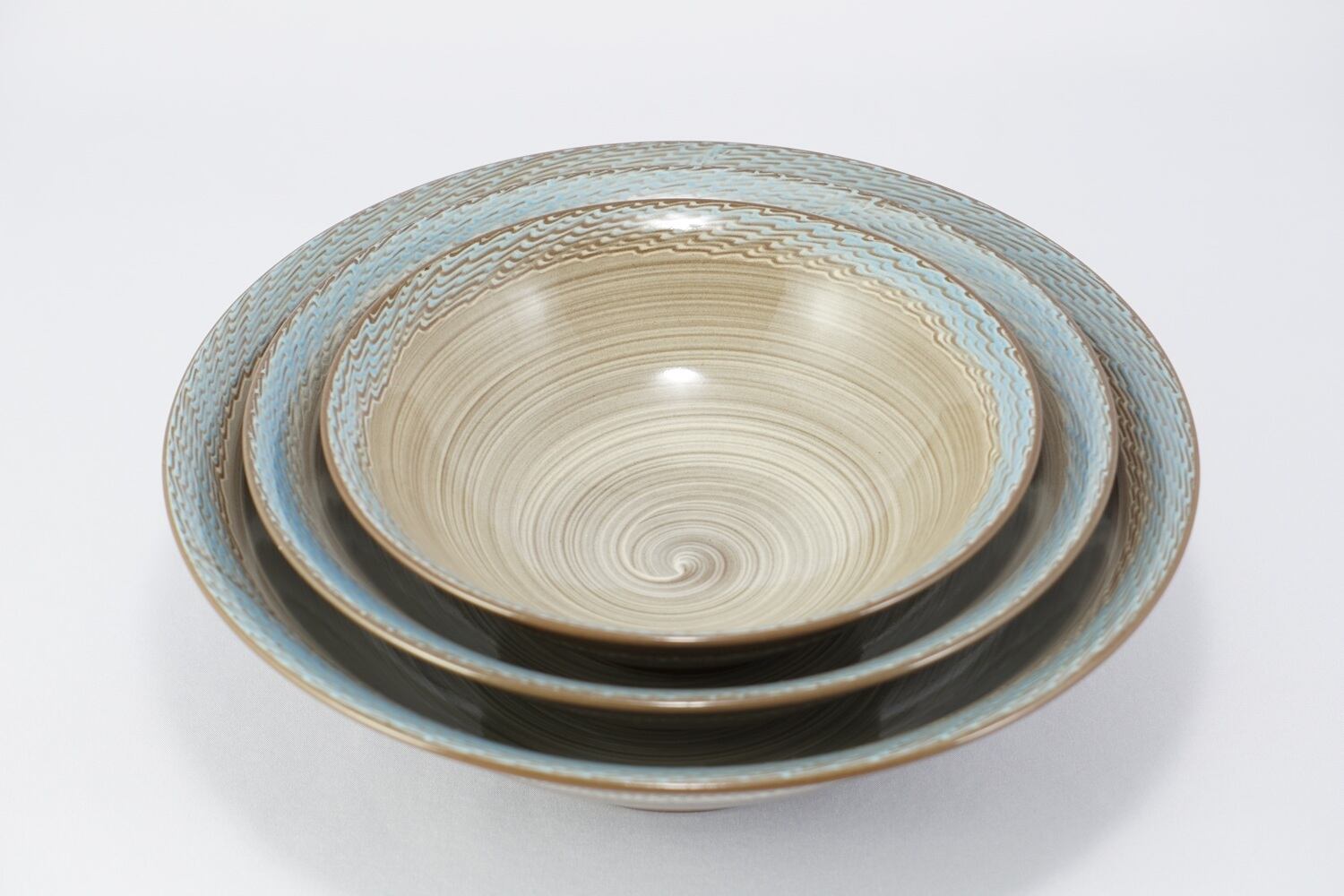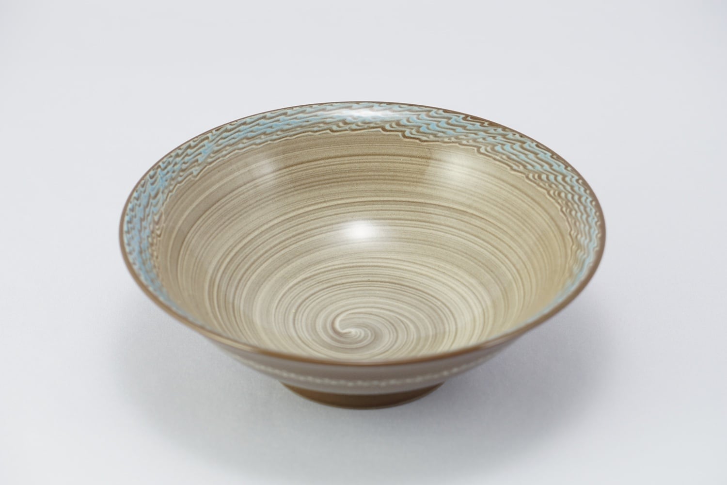 『平鉢(小)刷毛目 さざ波』は、ろくろで一つ一つ丁寧に作られており、土がまだ乾かない状態で施された刷毛目によるさざ波の模様が印象的です。小さなサイズながらも、そのデザインは見る人を魅了し、食卓を華やかに演出します。優雅な形状と縁の青色が食材を引き立て、料理に彩りを添えることでしょう。